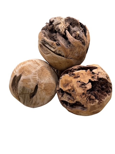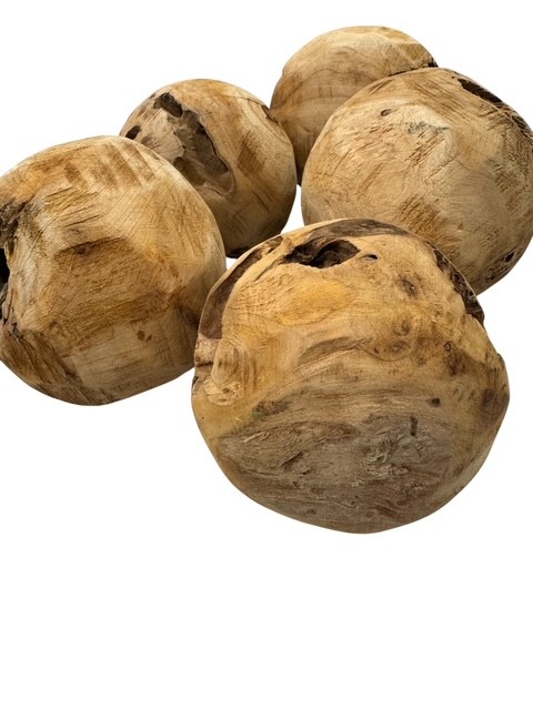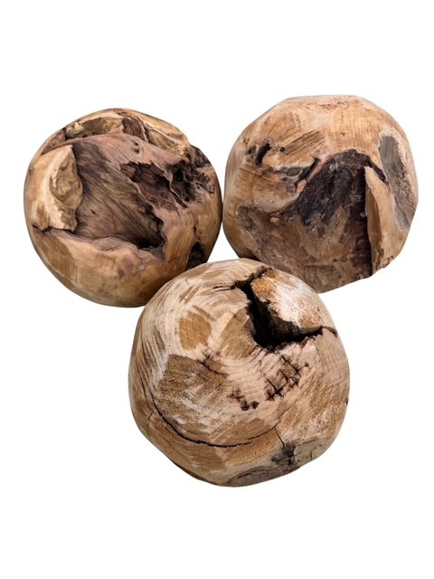 Decorative wood orbs that are chiseled from fir wood and sculptured into a round chunk of wood. All hand made. Each piece is wonderfully unique. Beautiful textures of knots, holes, splits, shapes and variation of color make for a natural and organic accent piece. Three sizes available. 4, 6, and 8 inches approximately in diameter.